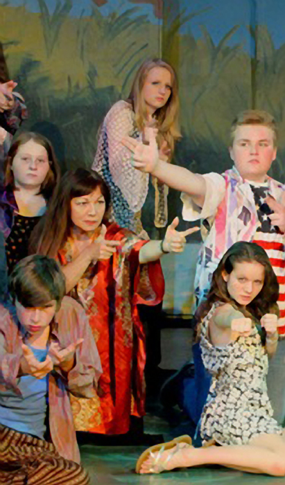 On stage in "Age of Aquarius"