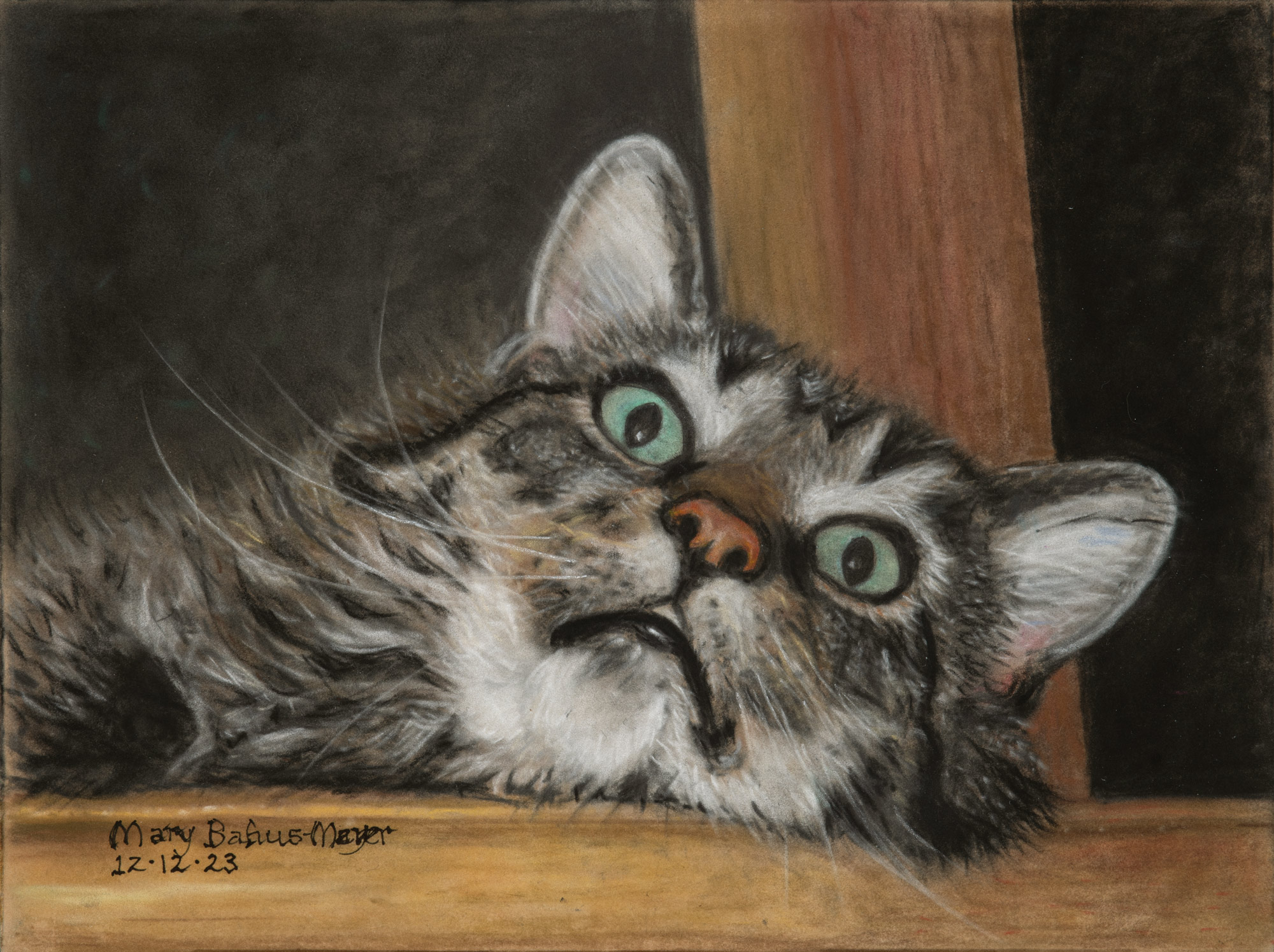 Wanting to honor my cat Soxy, who died of cancer, I took a pet portrait pastel class in 2022 at the Lincoln Gallery in Loveland. This experience totally reignited my love of art and drawing! I enjoy blending the chalk with my fingertips and other tools to create different colors, textures, and effects, and I've expanded from animals into Nature scenes, as well. My Cloud Forms: Gravity Waves pastel was included in the 2023 Lincoln Gallery Members Exhibit.